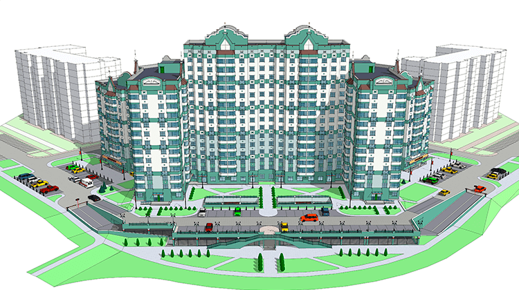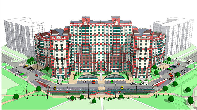 Многоквартирный жилой дом со встроенными помещениями торгового назначения и гараж-стоянкой в микрорайоне «Каменная горка-5» в г.Минск на 440 квартир.